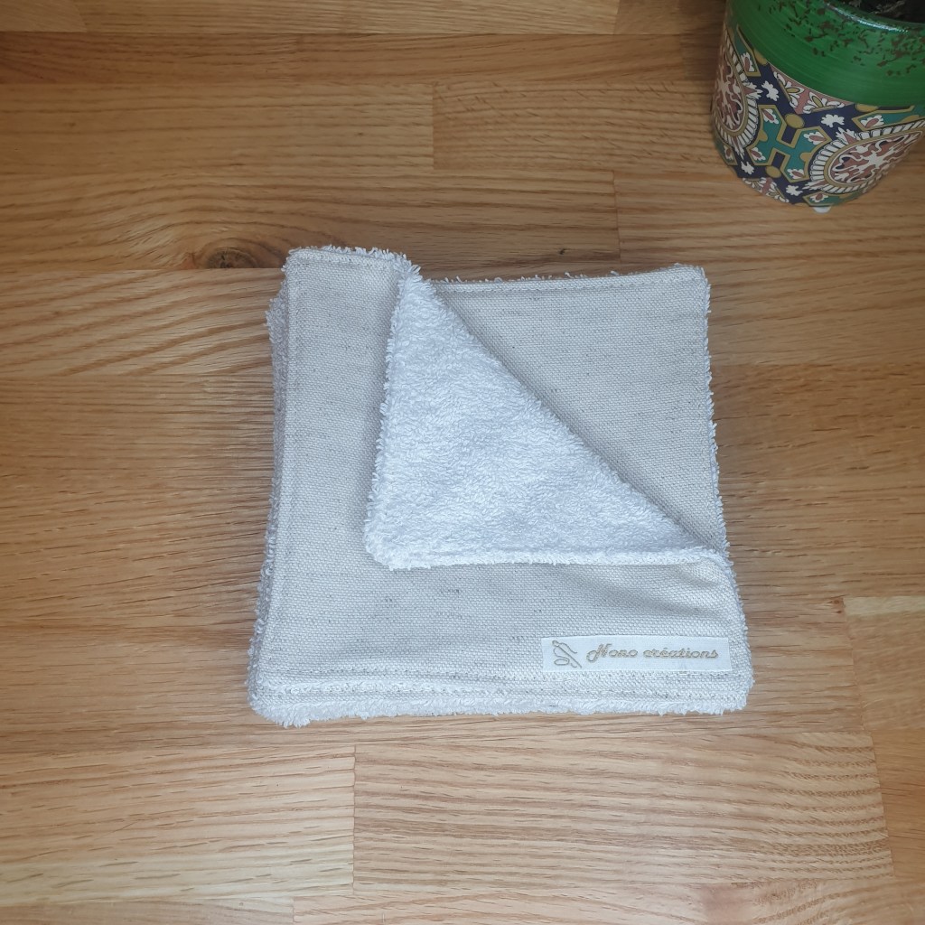 Essuie-tout de 15 cm de côté, côté pile en lin côté face en tissu éponge. Modèle « lin ».