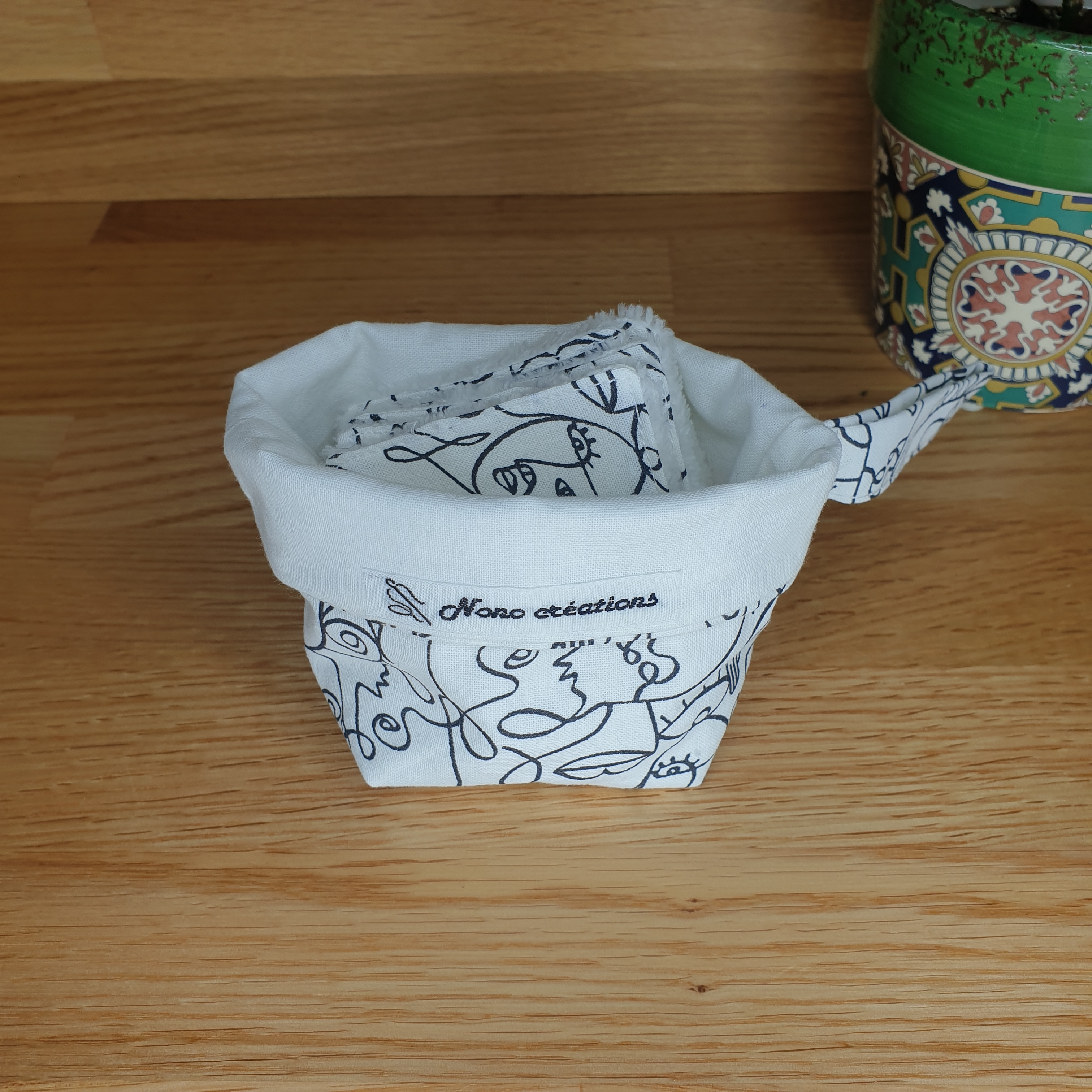 6 lingettes lavables et son panier. Lingettes de 6 cm de côté. Modèle « visage ».